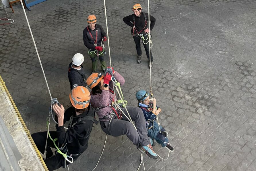 On se partage en deux sous-groupes, Nico à l’équipement sous l’œil attentif de Christophe, et amélioration des techniques de progression pour les autres avec Marc.
