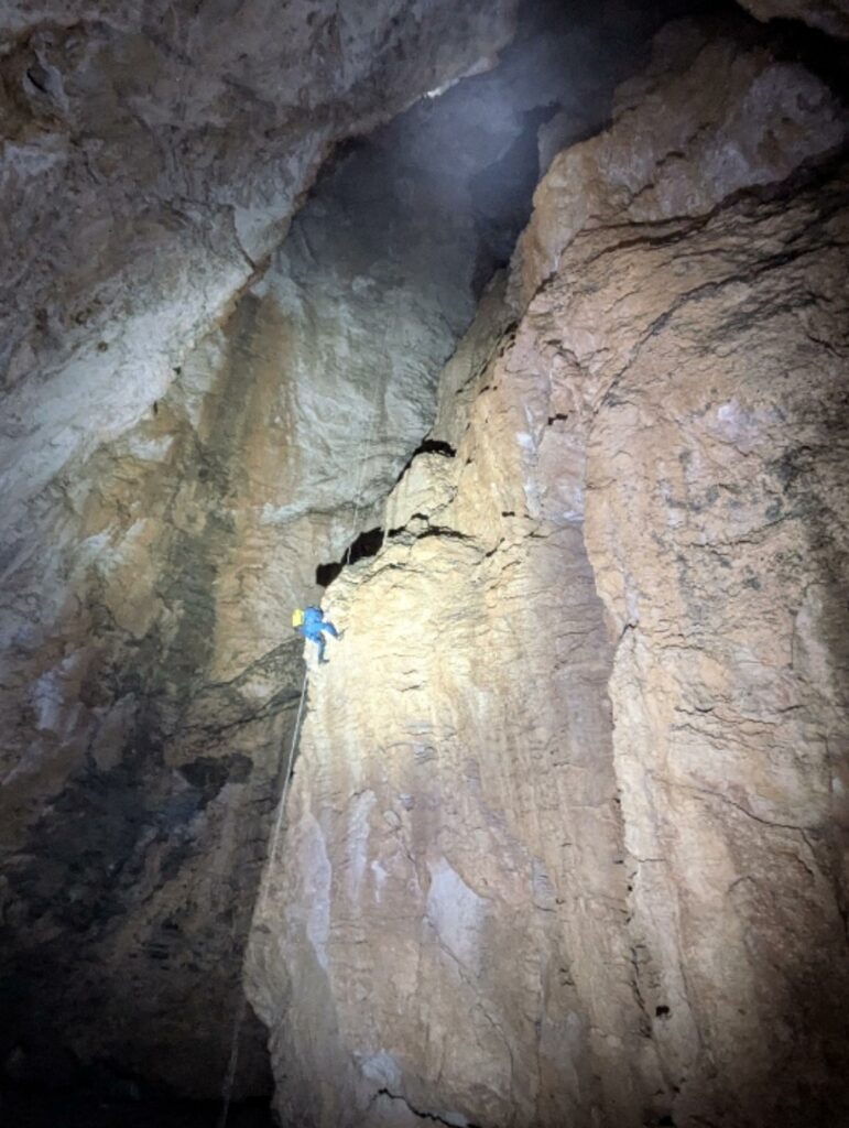 On en rêvait et bien on l’a fait, mais pas complètement, faudra y retourner pour atteindre le fond à – 360 m et également pour faire la traversée à deux groupes en se croisant dans la salle Joly.