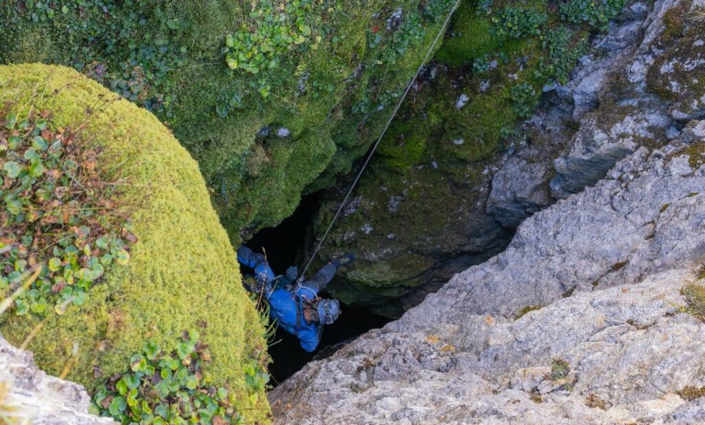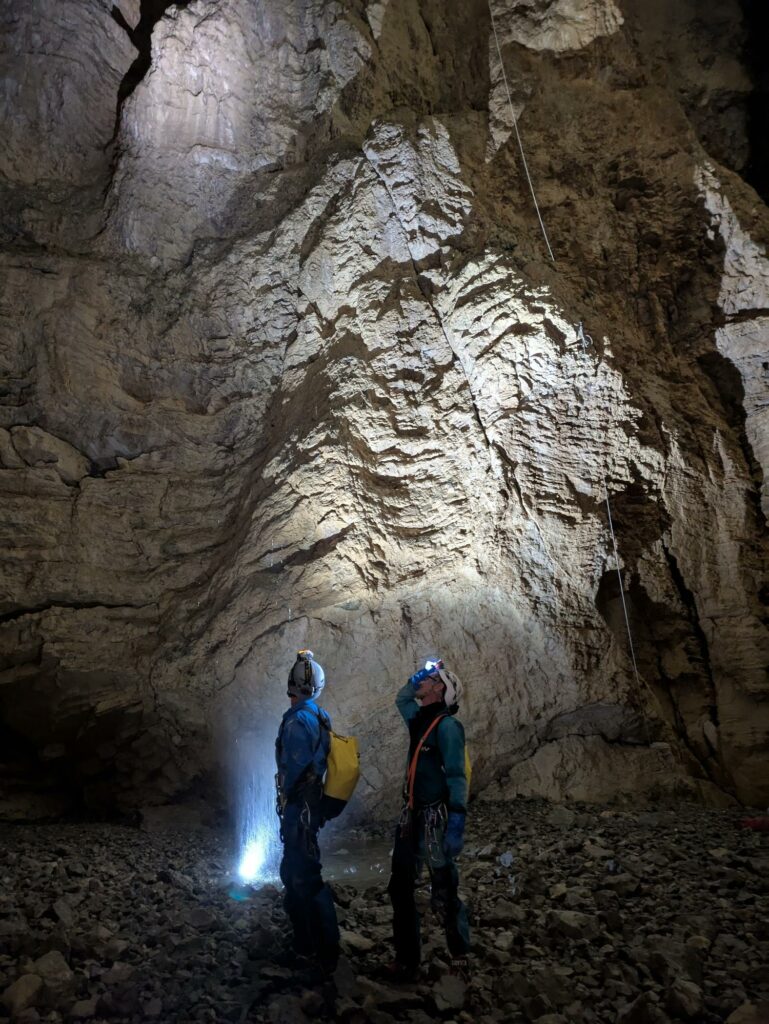 Que ce soit par le Dupont en mai ou le Martin en octobre l’ambiance est garantie dans ces grandes verticales, on va pas se mentir. Pas évident de voir où on va quand on équipe tellement c’est profond et qu’une petite brume intercepte notre rayon de lumière !